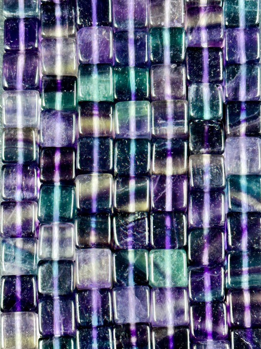 AAA NATURAL Fluorite Gemstone Bead 8mm Cube Shape Bead, Beautiful Natural Purple Green Color Fluorite Gemstone Loose Beads Full Strand 15.5"