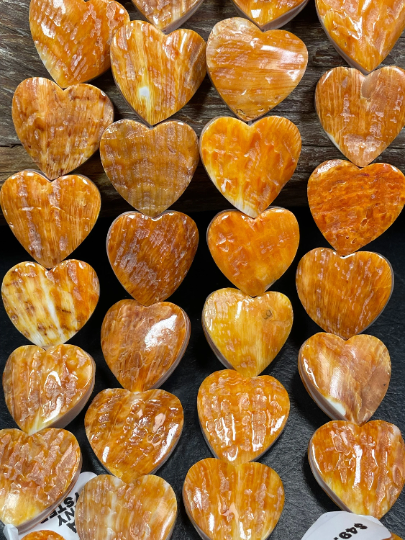 AAA Natural Spiny Oyster Heart Shape Shell Beads. Gorgeous Natural Orange Yellow Spiny Oyster Shell Bead.