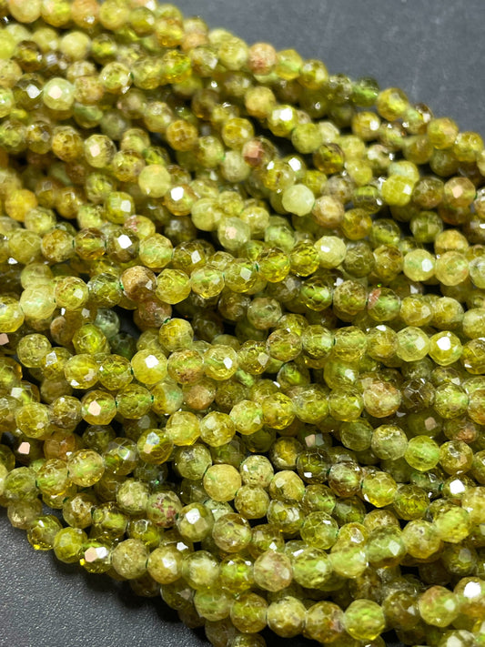 AAA Natural Green Garnet Gemstone Bead Faceted 2.5mm Round Bead, Gorgeous Natural Olive Green Color Green Garnet Stone Bead