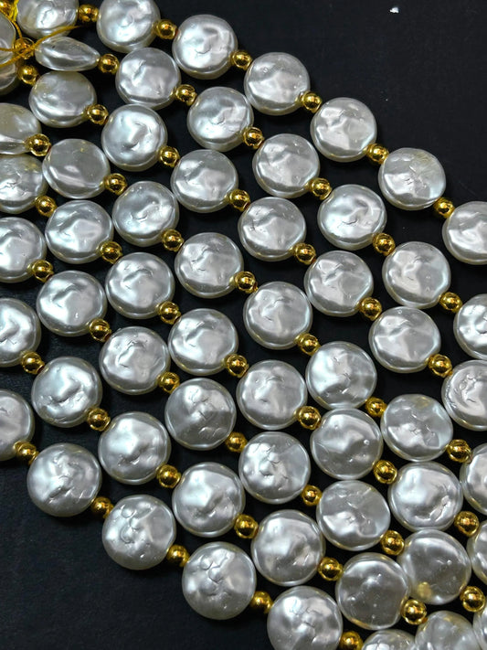 Chinese Swarovski Pearl Crystal Beads 14mm coin Bead, Beautiful White Swarovski Crystal Pearl 7.5"