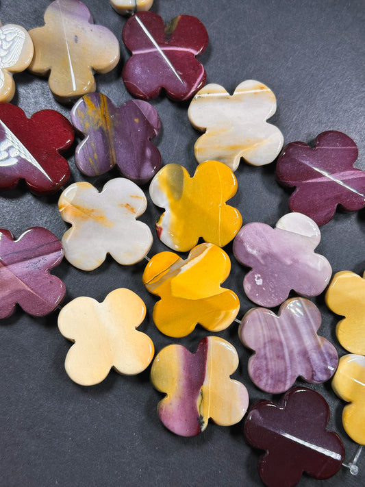 Natural Mookaite Gemstone Bead 35mm Flower Shape Bead, Beautiful Natural Red Yellow Brown Color Mookaite Jasper Stone Bead Full Strand 15.5"