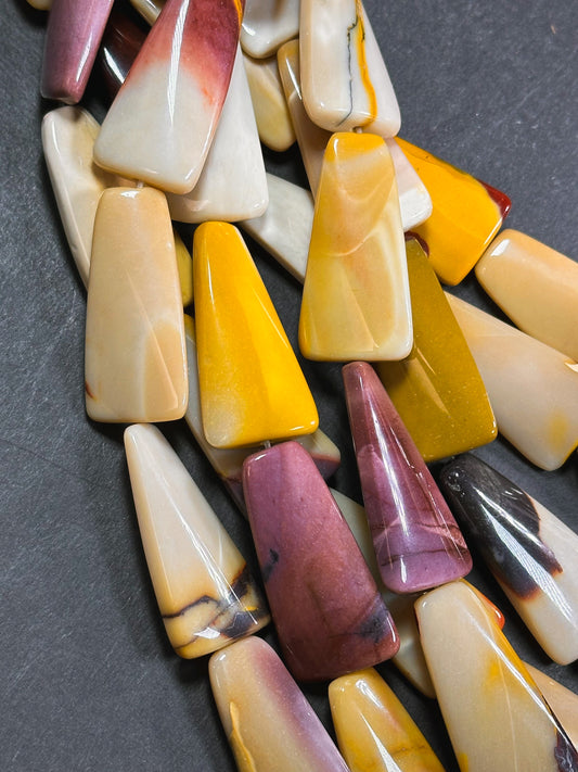 Natural Mookaite Gemstone Bead 36x17mm Trapezoid Shape, Beautiful Natural Red Yellow Color Mookaite Jasper Gemstone Bead, Full Strand 15.5"