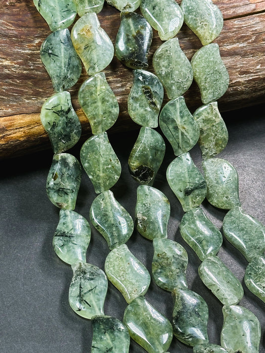 Natural Prehnite Gemstone Bead 29x18mm Wave Shape Bead, Beautiful Natural Green Prehnite Stone Bead w/ Epidote Inclusions, Full Strand 15.5"