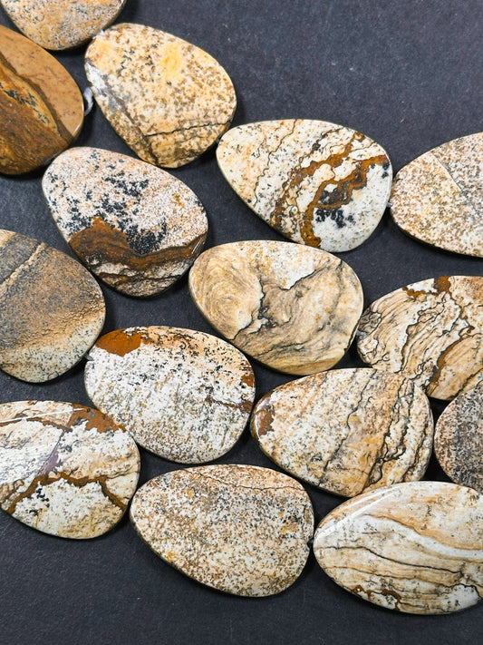 Natural Picture Jasper Gemstone Bead 28x20mm Curved Oval Shape, Beautiful Natural Brown Beige Color Picture Jasper Bead, Full Strand 15.5"