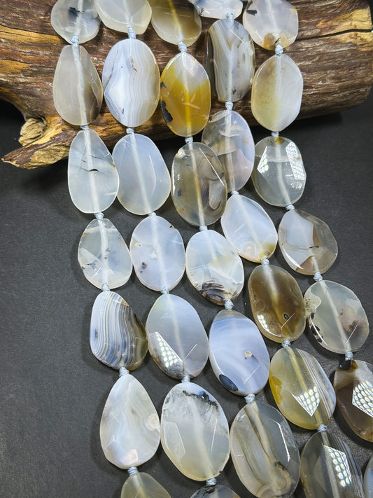 Natural Botswana Agate Gemstone Bead Freeform Faceted Oval Shape, Gorgeous Natural Gray Beige Color Botswana Agate Excellent Quality 15.5"