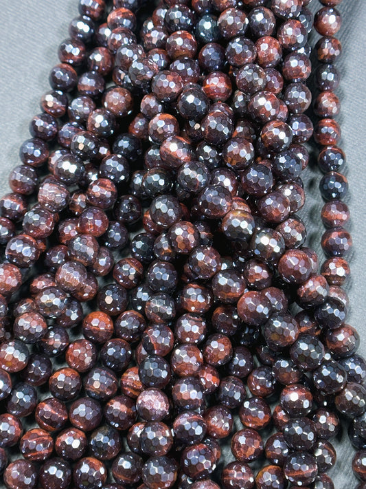 Mystic Natural Tiger Eye Gemstone Bead Faceted 8mm Round Bead, Beautiful Dark Red Brown Color Mystic Tiger Eye Stone Bead Full Strand 15.5"