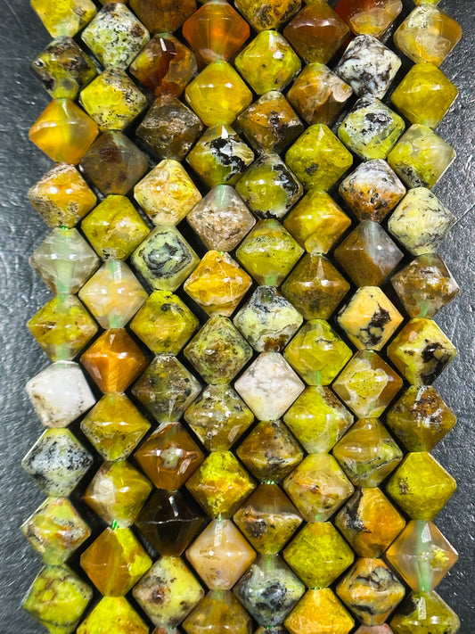 Natural Green Opal Gemstone Bead Faceted 8mm Bicone Diamond Shape Bead, Beautiful Natural Green Brown Color Opal Beads, Full Strand 15.5"