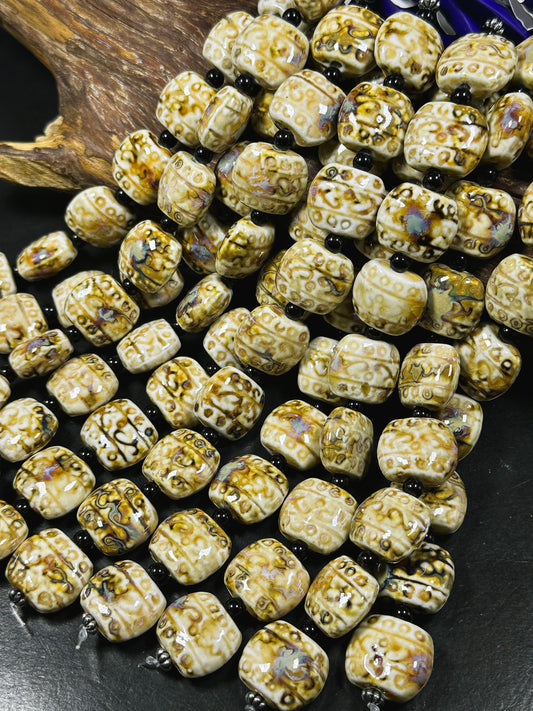 AAA Natural Tibetan Agate Gemstone Beads, 14x39mm, White Dragon Design, Tube/Barrel Shape Beads, Beautiful Brown Beads, Great Quality Beads! Full length 15.5"