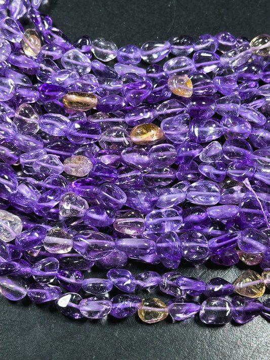 AAA Natural Ametrine Gemstone Bead Freeform Pebble Shape, Beautiful Natural Clear Purple Orange Ametrine Excellent Quality Full Strand 15.5"