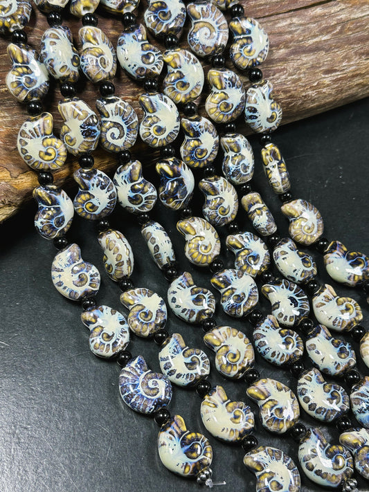 Beautiful Hand Painted Porcelain Beads, 21x17mm Unique Hand Painted Blue Porcelain Nautilus Shell Shape Beads, Gorgeous Porcelain Beads 9"