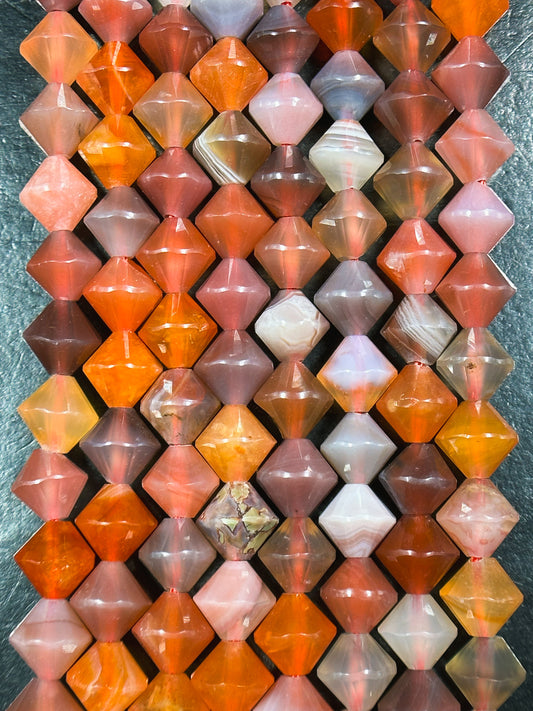 Natural Botswana Agate Gemstone Bead Faceted 8mm Bicone Diamond Shape Bead, Beautiful Natural Multicolor Orange Agate Bead Full Strand 15.5"