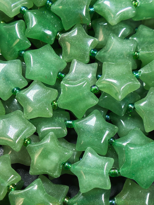 Natural Aventurine Gemstone Bead 15mm Star Shape Bead, Beautiful Natural Green Jade Color Aventurine Beads Great Quality Full Strand 15.5"