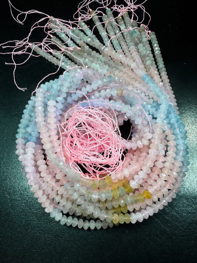 AAA Natural Morganite Gemstone Bead Faceted 4x6mm Rondelle Shape Bead, Beautiful Multicolor Pink, Blue, Yellow Morganite Gemstone Bead 15.5" Strand