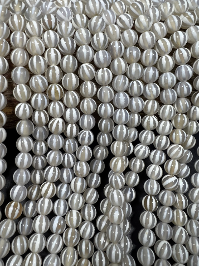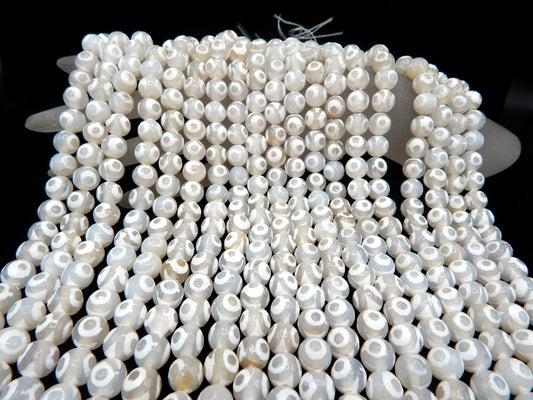 NATURAL Gemstone Tibetan beads hand Painted Agate, 8mm Round Shape, Striped, Beautiful White Color Full Strand 15.5”