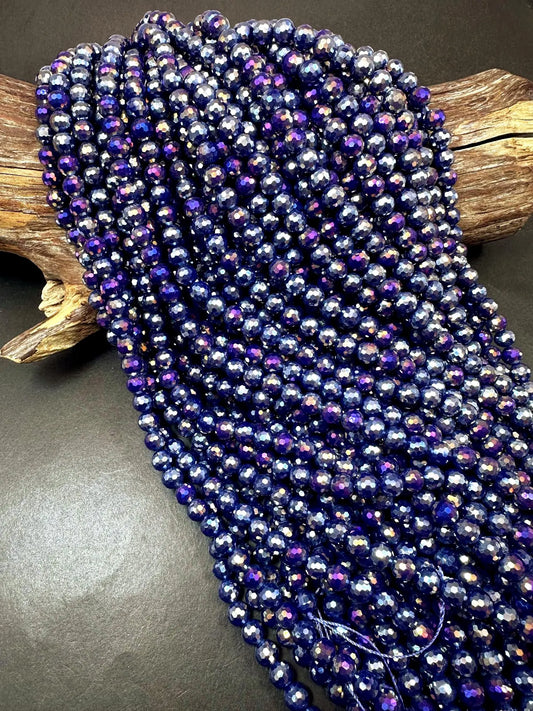 Beautiful Crystal glass bead. 8mm Faceted round shape bead. Gorgeous Royal Blue color, high quality crystal bead! Full strand 15"