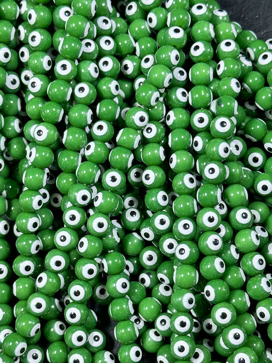 Beautiful Green Evil Eye Glass Beads 6mm 8mm Round Beads, Beautiful Green Evil Eye Amulet Glass Beads, Full Strand Evil Eye Glass Beads
