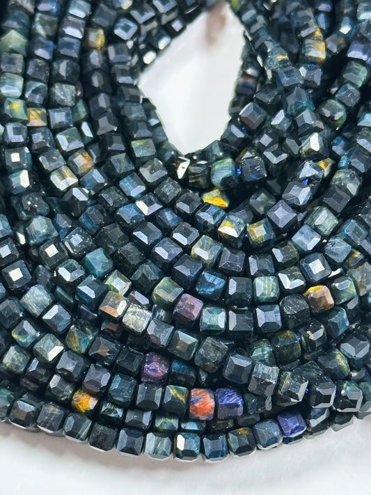 NATURAL Tiger Eye Gemstone Bead Faceted 4.5mm Cube Shape, Beautiful Dark Blue Color Tiger Eye Gemstone Bead Full Strand 15.5", Great Quality