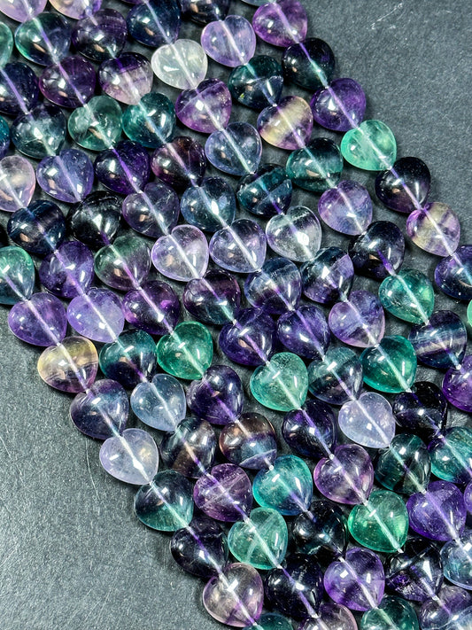 AAA NATURAL Fluorite Gemstone Bead 14mm Heart Shape Bead, Gorgeous Natural Purple Green Clear Color Fluorite Gemstone Bead Full Strand 15.5"