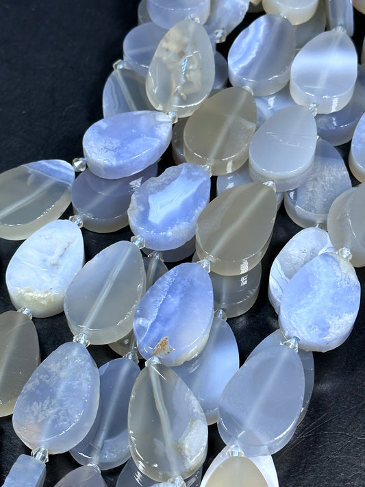 NATURAL Blue Lace Agate Gemstone Bead 21x31mm Teardrop Shape Beads. Beautiful Natural Blue Color Agate Beads Full Strand 15.5"