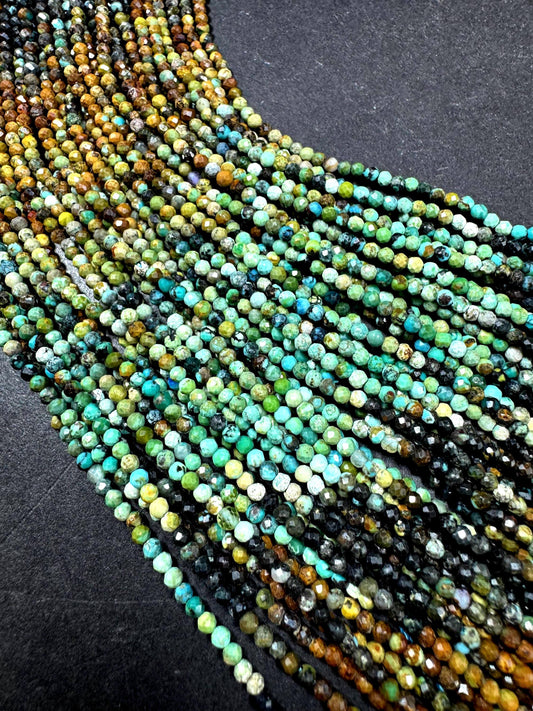 100% Natural turquoise gemstone bead. faceted round shape . natural blue brown color. Excellent quality ! full strand 15.5