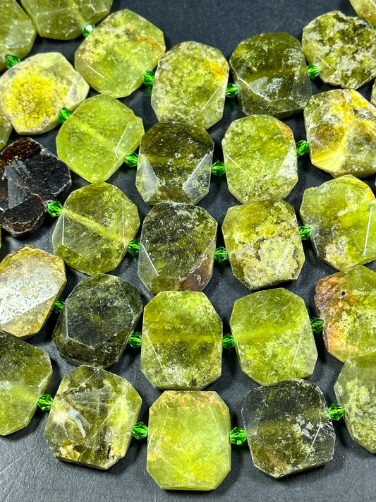 NATURAL Green Garnet Gemstone Bead Faceted 24x20mm Rectangle Tablet Shape Bead, Beautiful Green Color Garnet Gemstone