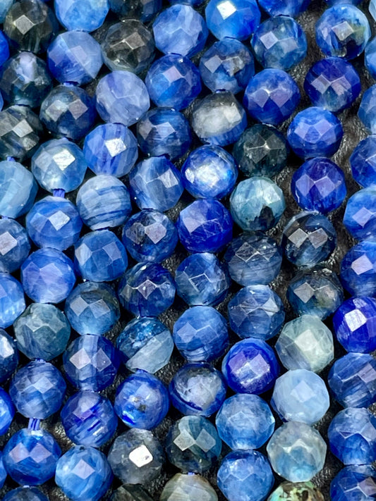 AAA Natural Kyanite Gemstone Bead Faceted 3mm Round Shape Bead, Beautiful Royal Blue Color Kyanite Gemstone Beads