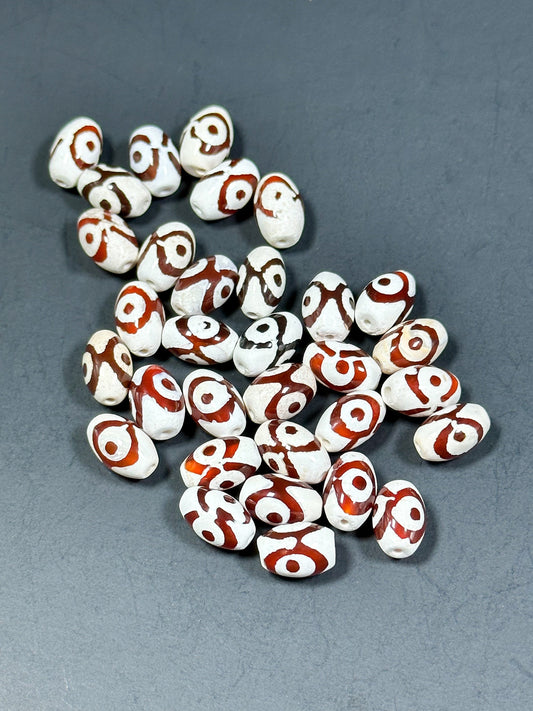 NATURAL Hand Painted Tibetan Agate Gemstone Bead 11x8mm Tube Shape Beads, Beautiful Hand Painted Red and White Color Tibetan Loose Beads