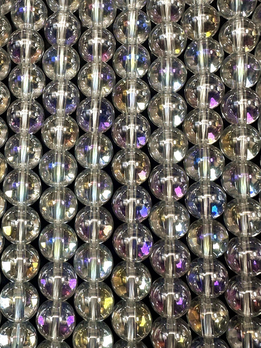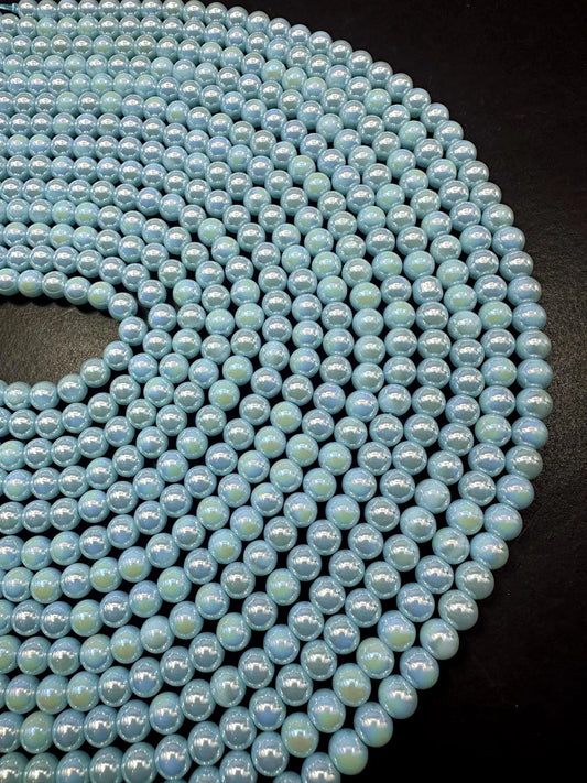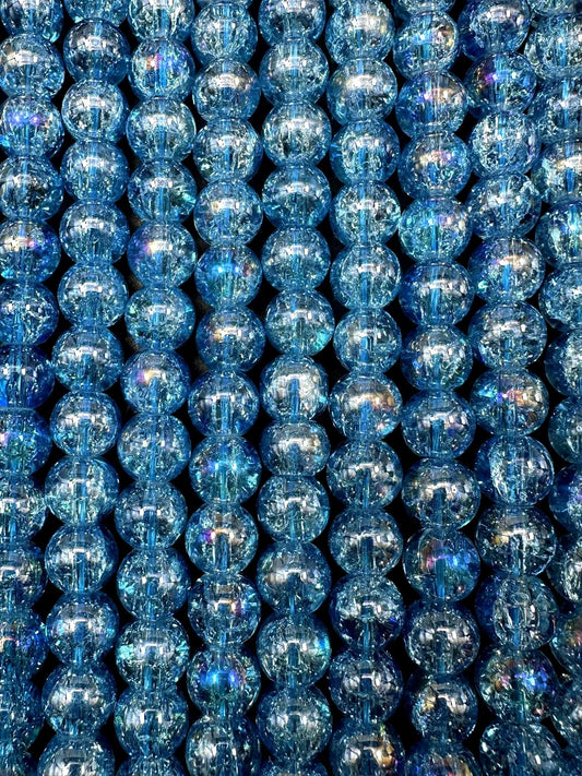 Light Blue Crystal Glass Smooth Bead with Rainbow Flash. High quality crystal bead! Full strand 15.5