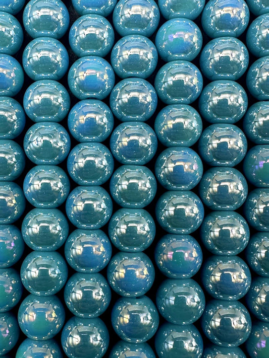 Beautiful Teal Blue Crystal Glass Pearl Bead. Round shape bead. Gorgeous high quality crystal bead! Full strand 15.5"