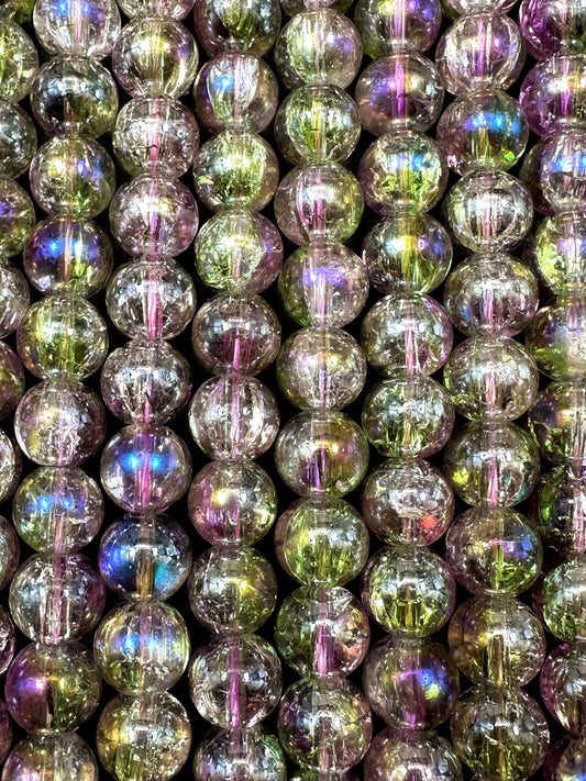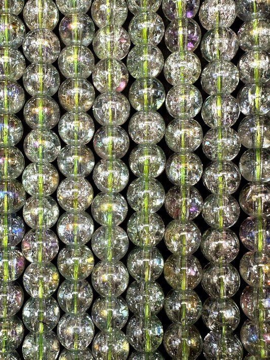 Clear Green Crystal Glass Smooth Bead with Rainbow Flash. High quality crystal bead! Full strand 15.5
