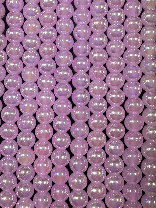 Beautiful Light Pink Crystal Glass Pearl Bead. Round shape bead. Gorgeous high quality crystal bead! Full strand 15.5"