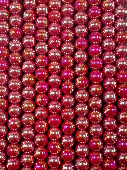 Beautiful Red Crystal Glass Pearl Bead. Round shape bead. Gorgeous high quality crystal bead! Full strand 15.5"