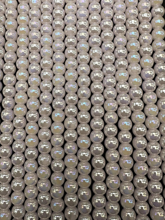 Beautiful White Crystal Glass Pearl Bead. Round shape bead. Gorgeous high quality crystal bead! Full strand 15.5"