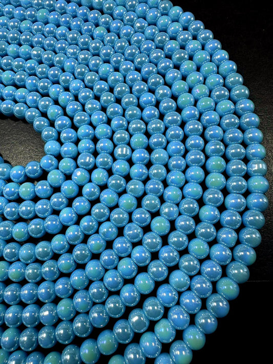 Beautiful Blue Turquoise Crystal Glass Pearl Bead. Round shape bead. Gorgeous high quality crystal bead! Full strand 15.5"