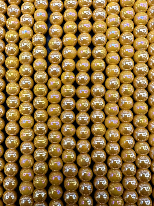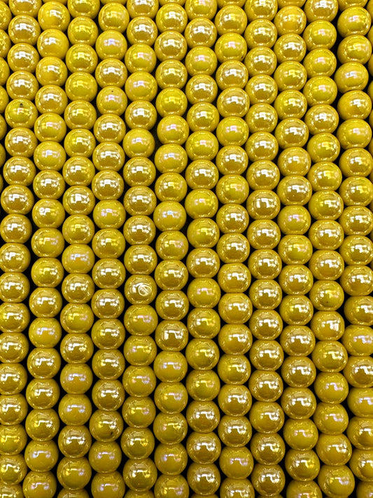 Beautiful Golden Yellow Crystal Glass Pearl Bead. Round shape bead. Gorgeous high quality crystal bead! Full strand 15.5"