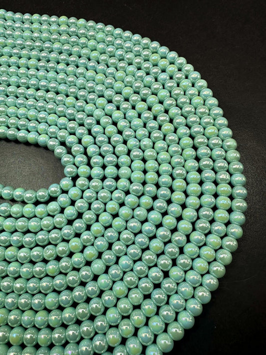 Beautiful Mint Green Crystal Glass Pearl Bead. Round shape bead. Gorgeous high quality crystal bead! Full strand 15.5"