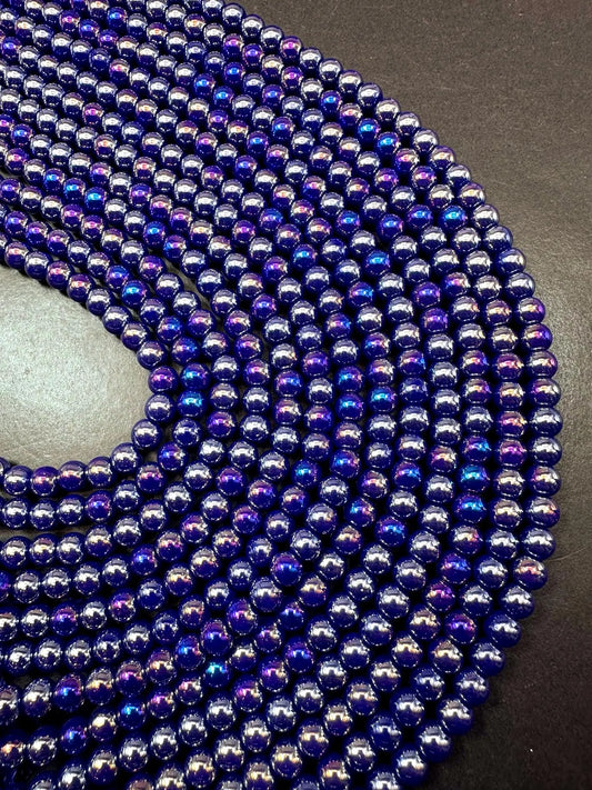 Beautiful Deep Royal Blue Crystal Glass Pearl Bead. Round shape bead. Gorgeous high quality crystal bead! Full strand 15.5"