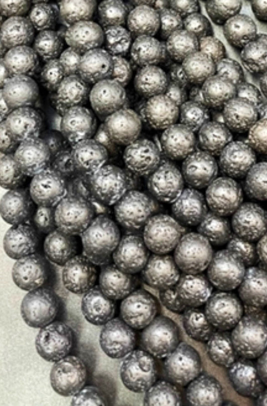 AAA Natural Lava Rock Stone Bead 4mm 6mm 8mm 10mm 12mm Round Bead, Beautiful Natural Black Color Lava Rock Stone Bead, Full Strand 15.5"