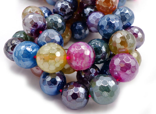 NATURAL Gemstone Multi-Color Electroplated Agate Faceted Round,6/8/12mm Full Strand 16" For JEWELRY Making!Not treated in anyway!AAA quality
