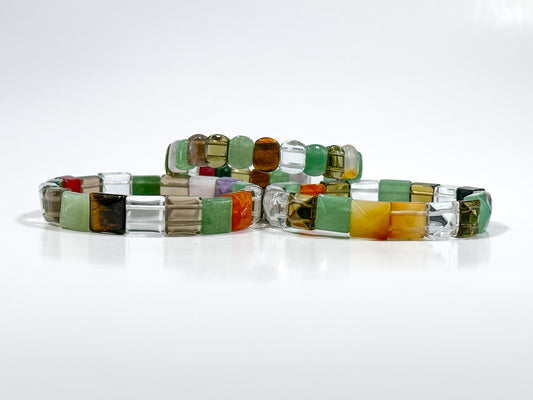 Natural Mixed Stones Bangle Rectangle Shape Gemstone Bracelet. Beautiful Green Yellow Orange Color Bead. Excellent Quality Bangle!