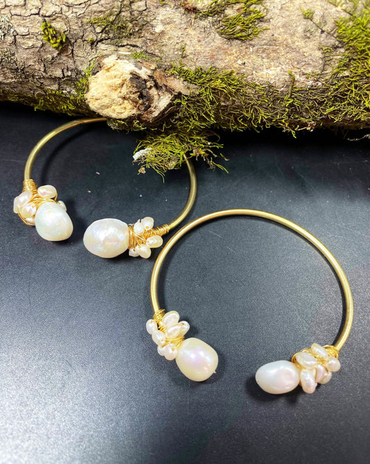 Beautiful Handmade Natural Freshwater Pearl Bracelets. 13mm Coin Shape Pearl with 6mm Pearls, Silver & Gold Plated