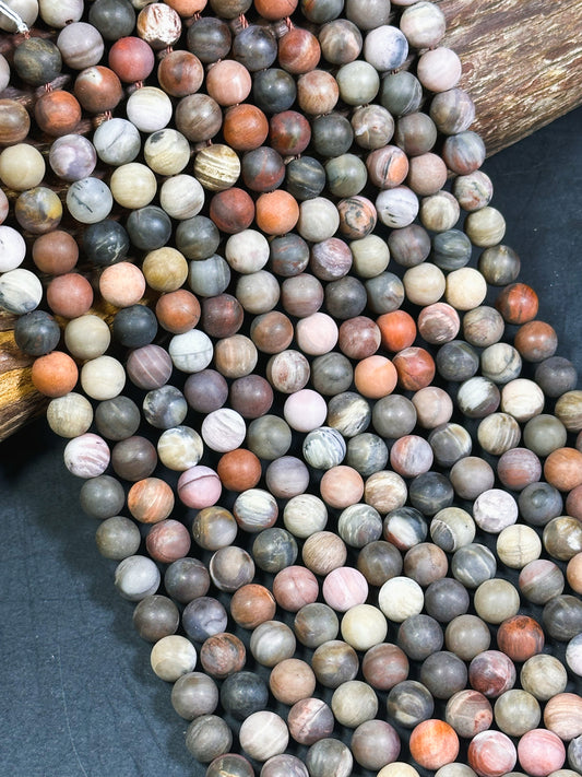 Beautiful Tibetan Gemstone Bead 8mm Round Beads, Gorgeous Brown Orange Tibetan Gemstone Bead 15.5"