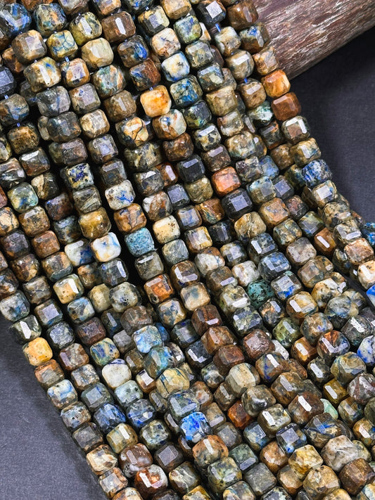 Natural Chrysocolla Gemstone Bead Faceted 7-8mm Cube Shape, Beautiful Brown Blue Color Chrysocolla Beads Full Strand 15.5"