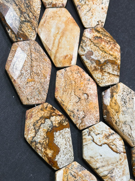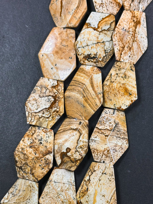Natural Picture Jasper Gemstone Bead 35x24mm Coffin Shape Bead, Beautiful Natural Brown Beige Color Picture Jasper Bead, Full Strand 15.5"
