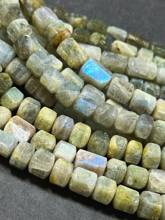 Natural Labradorite Gemstone Bead Faceted Tube Shape Bead, Gorgeous Natural Gray Brown Color, Blue Rainbow Flash Labradorite Beads 15.5"