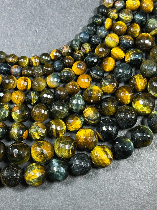 Natural Tiger Eye Gemstone Bead Faceted 6mm 8mm 10mm Round Beads, Beautiful Natural Brown Navy Blue Color Tiger Eye Stone Beads 15.5" Strand