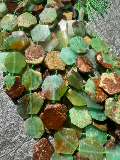 Natural Chrysoprase Gemstone Bead 20mm Hexagon Shape Bead, Gorgeous Natural Green Brown Chrysoprase Stone Beads, 15.5" Strand