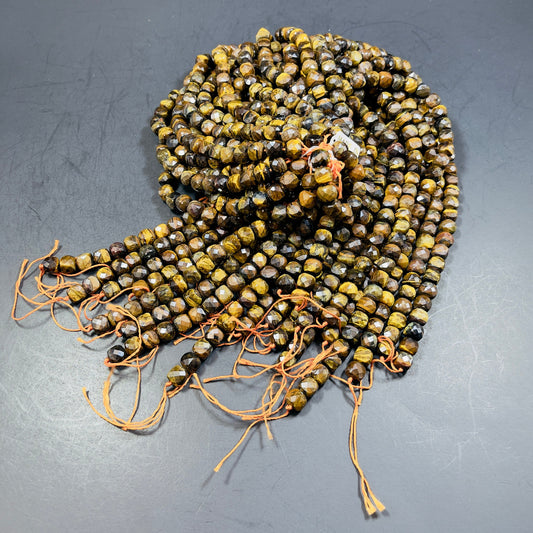 Natural Brown Tigers Eye Gemstone Beads - 10mm Faceted Cube Beads - Natural Brown Yellow Color Tiger Eye Gemstone, Excellent Quality 15.5"