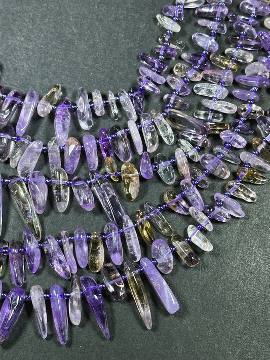 Natural Ametrine Gemstone Bead Freeform Stick Shape Beads, Gorgeous Natural Purple Yellow Color Ametrine Gemstone Beads, Full Strand 15.5"