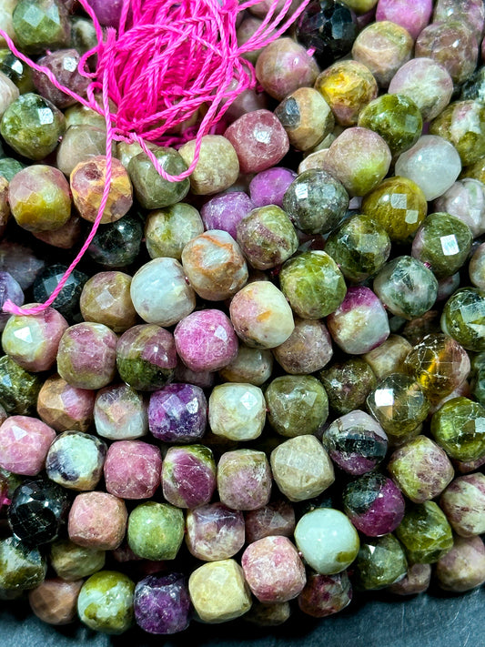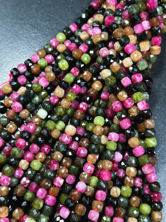 AA Natural Tourmaline Gemstone Beads Faceted 8mm Cube Shape, Beautiful Multicolor Tourmaline Gemstone Beads Full Strand 15.5"